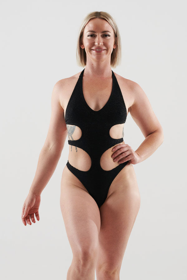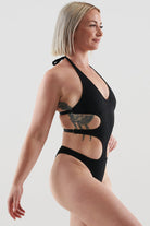 This bodysuit is all about bold lines and barely-there attitude. Designed to show skin where it counts, with side cut-outs that frame your waist and a Brazilian cut that keeps it cheeky from every angle.