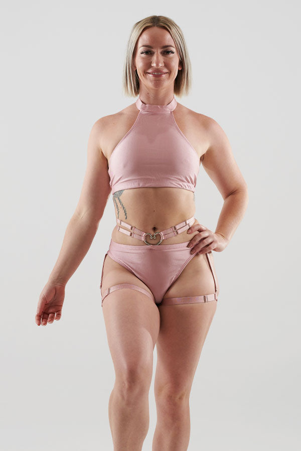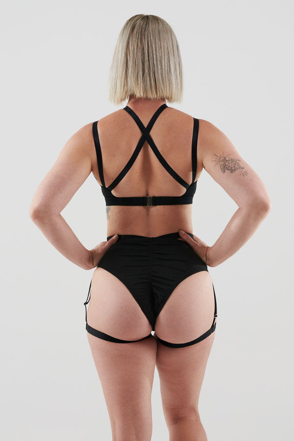 Cut high on the hip with a flattering Brazil bum scrunch, these bottoms hug just right and shine under the lights. The satin spandex finish gives luxe energy, while adjustable details let you customise the fit to your body.