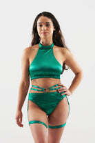 Model is wearing Barcelona with Sydney bottoms in a size XS
