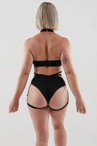 Model in black wearing Sydney Brazils Medium -We recommend you size up if you are in-between sizes - Barcelona Halterneck size S- This is generous sizing