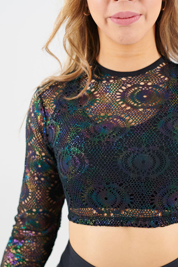 Introducing Shiloh peacock, our Long Sleeve lace shimmer top – the perfect blend of allure and versatility for those who loves to layer up! Designed to be worn over your favorite pole bra, this top adds an extra dose of drama to your routine while maintaining the comfort and support you need.